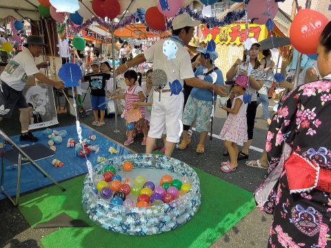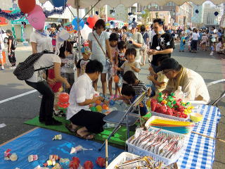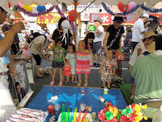 お子様連れの多い夏祭り。小さな子どもさんに楽しんでいただけるようプレイコーナーを準備