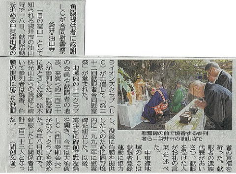 第22回献眼者合同慰霊祭 2014年10月18日(土)