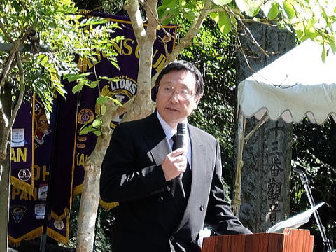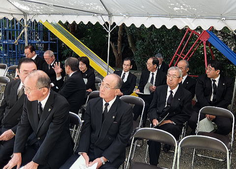爽やかな秋晴れのもと、慰霊碑の前で式典が厳かに営まれ