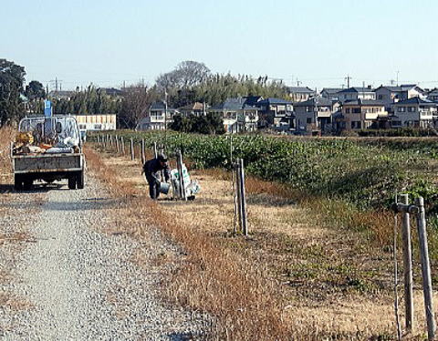 新しい苗木を植え、保水性を高める土壌改良剤を混ぜ込みます