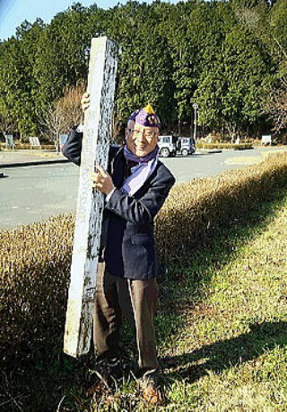 古い木製の碑を撤去