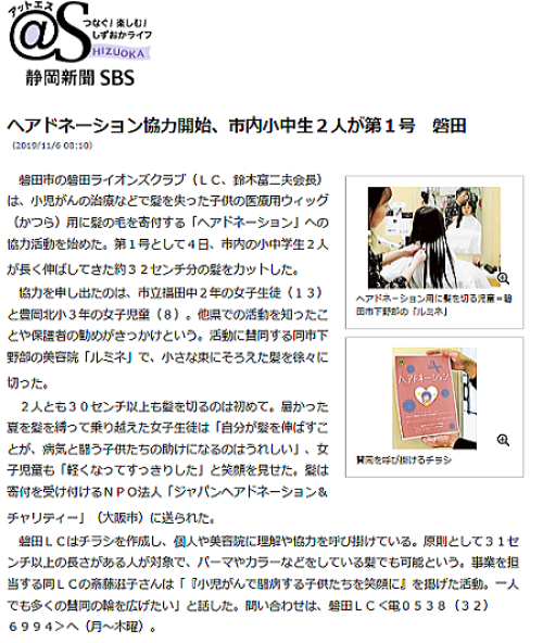 磐田ライオンズクラブでは、髪の毛を寄付して下さる方を募集しております