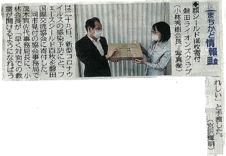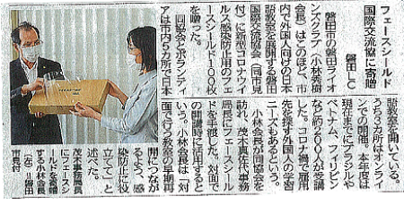 国際交流協会へフェイスシールド寄付