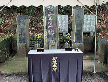 境内の霊碑前に設けられた焼香所