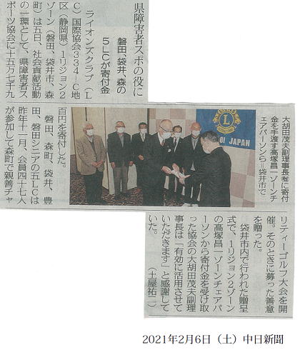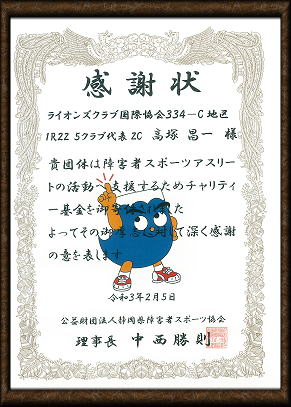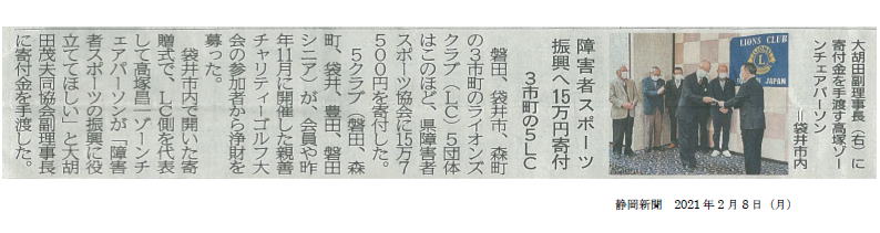 そのチャリティを静岡県障害者スポーツ協会へ寄付しました