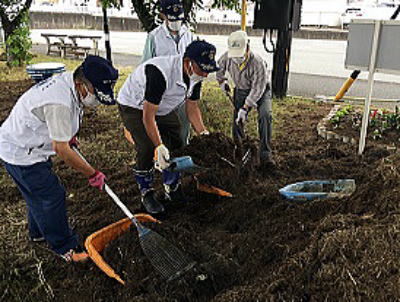 花壇の花を植え替え