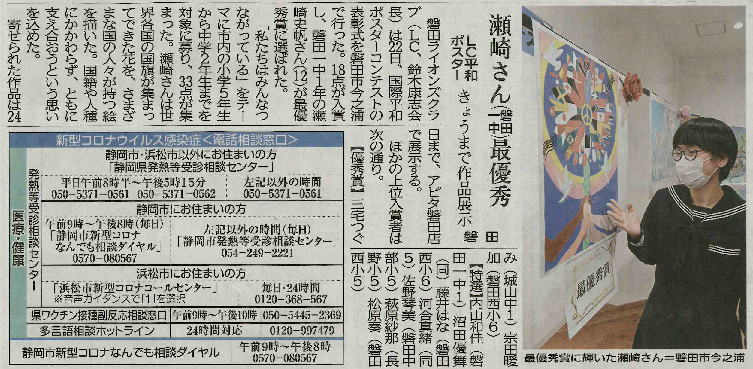 最優秀賞 磐田第一中学校の瀬崎さんの作品