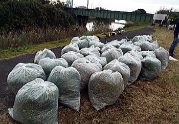 刈り取った草は100袋以上にのぼりました