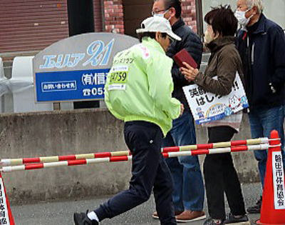 背中に「薬物乱用防止」の文字で啓発活動も抜かりなく