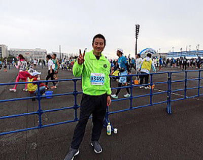 ハーフを好タイムで走り切った我がクラブのホープ小岸ライオン