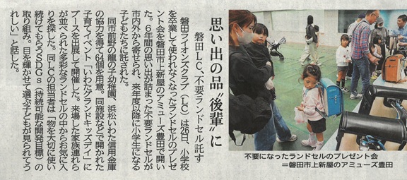 おかげさまで62個のランドセルがバトンタッチされました