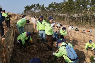 2018年(平成30年)2月24日(土) 防潮堤に松などの苗木を植えました |