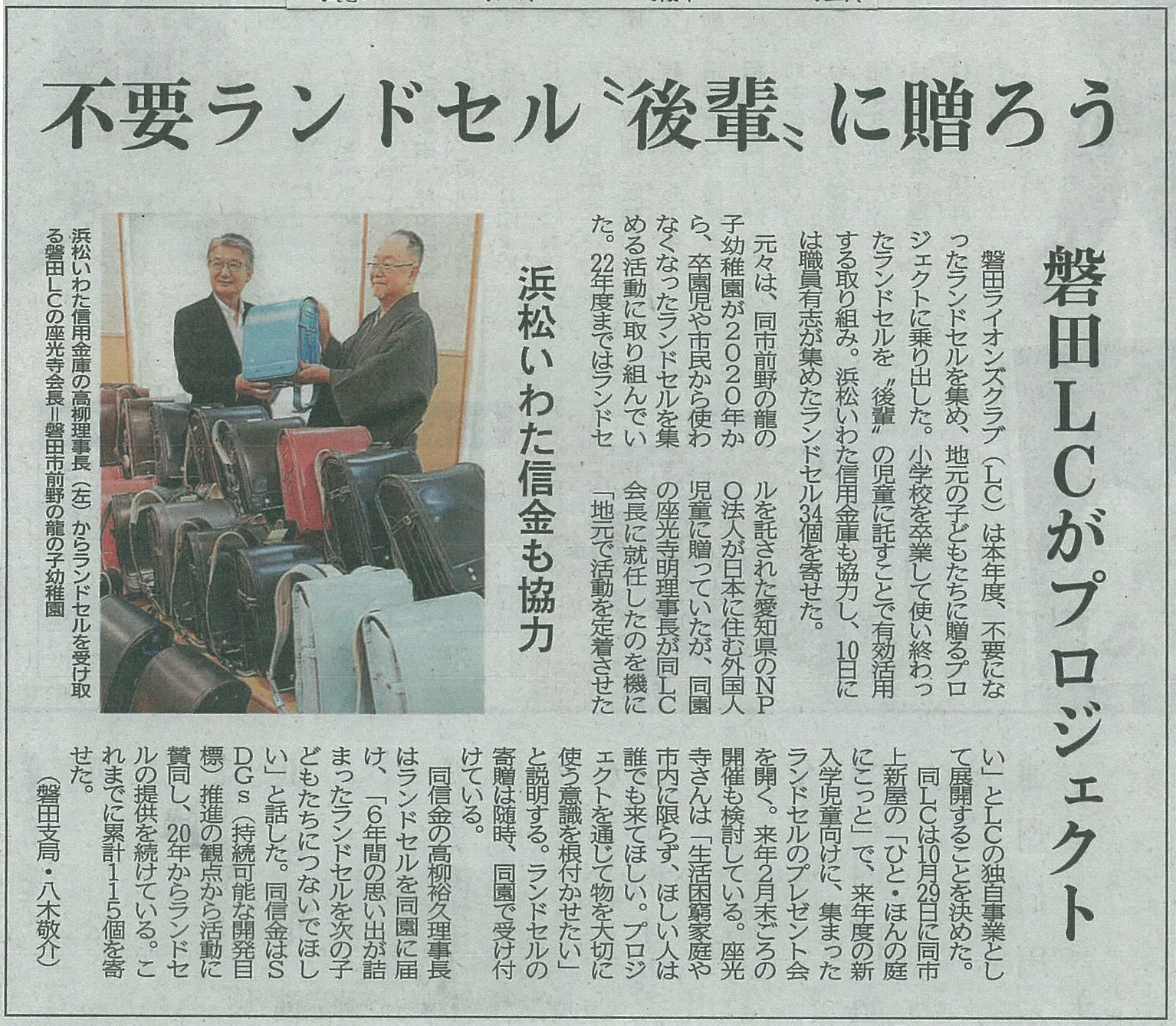 先輩小学生が大切に使ったランドセルを ![]()