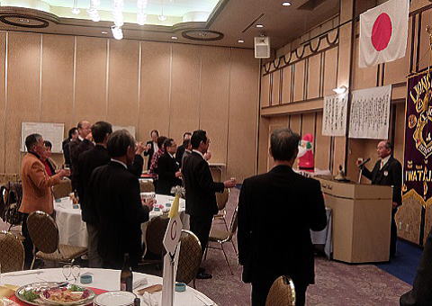 研修会の始まりです。山内幹事の発声で乾杯「WE SERVE」(^。^)y