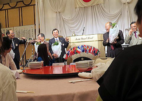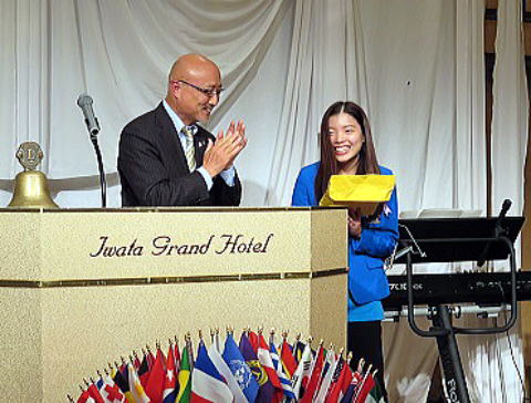 地区ガバナーからの記念品を相場会長よりニンちゃんへ