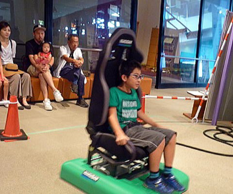 これは「地震ザブトン」という装置。実際の地震と同じ揺れが体感できます。