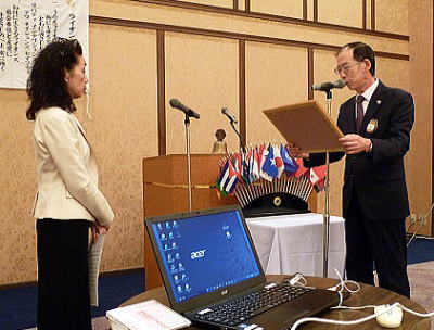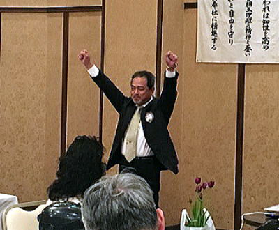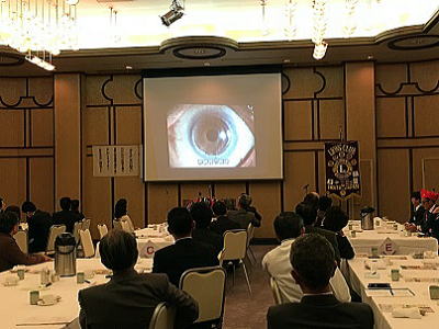 例会前の食事タイムにはヘレンケラースピーチの動画を鑑賞しました