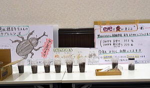 夏祭り献眼登録で子どもたちにプレゼントするカブトムシ(左)