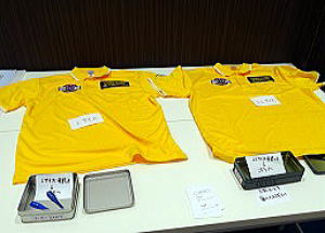 ミラノ国際大会のオリジナルポロシャツのチャリティオークションも行いました(右)