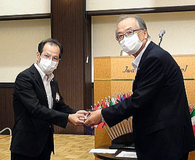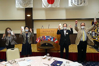 鈴木会長から、会長エレクトのL小林へバトンタッチ