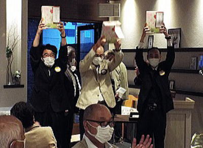 鈴木会長から江間会長へ議長槌が引き渡されました