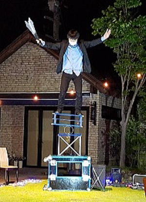 不安定な芝生の上で、ハラハラドキドキのバランス芸