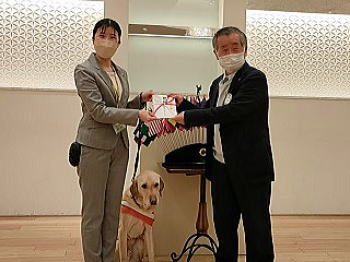 富士ハーネスの奥澤さまと盲導犬のラッキーくんが