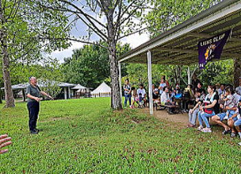 広場で例会が始まりました