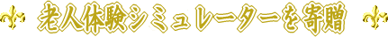 | 老人体験シミュレーター(高齢者疑似体験セット)2セットを市社会福祉協議会に寄贈しました。 その内容は、特殊なおもりや視野がせまくなるゴーグルなど。老化によって手足が思うように動かしにくくなったり、視界が狭まったりすることを、このシミュレーターで疑似体験し、高齢者福祉の必要性と具体的対策を、若い世代が考えるための一助となればというのがこのアクティビティの狙いです。この後、小中学校や高校での福祉教育に活用される予定です。お年寄りの気持ちがわかる青少年が育ってくれることを期待します。 |