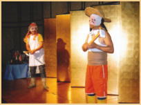 2003年最後の例会は恒例の研修会。大会計画委員会は実に楽しい研修会を企画しました。寛一(L相場大幸)お宮(L大石明浩)の熱演に会場からはやんやの拍手と爆笑が沸き起こりました。 | ||||