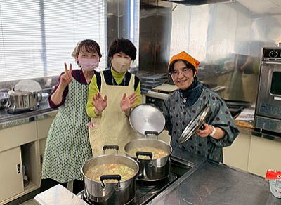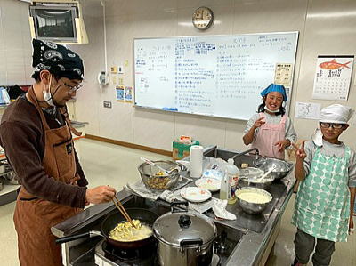 炊き込みご飯、豚汁、チーズ焼き、デザートなど、
